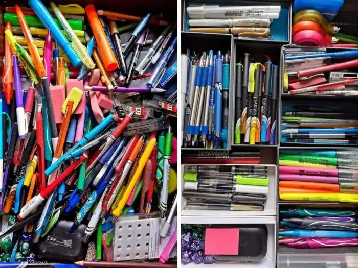 Разместила свои ручки в футляры от очков и телефонов, и теперь всё хранится в порядке