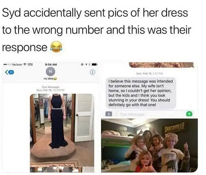 Сид случайно отправила фото своего нового платья по неправильному номеру - и получила великолепный ответ!