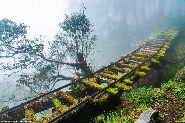 Заброшенный участок на бывшей лесной железной дороге Цзянси в Национальном парке Тайпиншань на Тайване