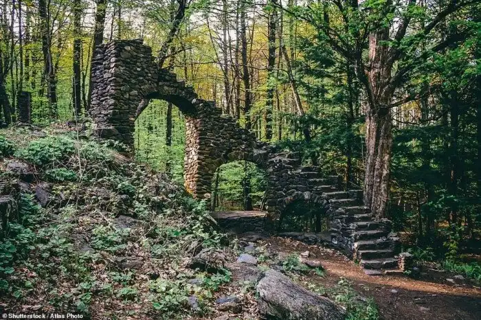 Этот особняк-замок принадлежал известному бродвейскому художнику по костюмам мадам Антуанетте Шерри. Здесь она устраивала громкие вечеринки, во время одной из которых произошел пожар. К 1960-м годам замок был заброшен - его никто не собирался восстанавливать. Вокруг руин проложили пешеходные тропы, и теперь этот лес называется "лесом мадам Шерри".