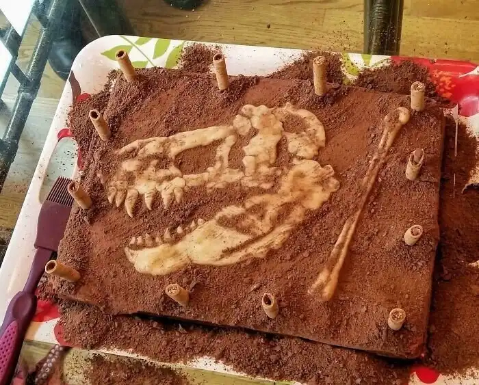 Именинный торт для археолога: шоколадное "место раскопок" и марципановые "доисторические останки"