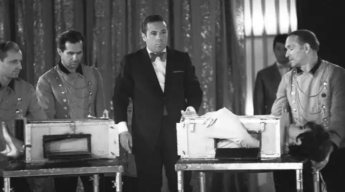 21. Выступление иллюзиониста Игоря Эмильевич Кио. Трюк «Распиливание». 1969 год