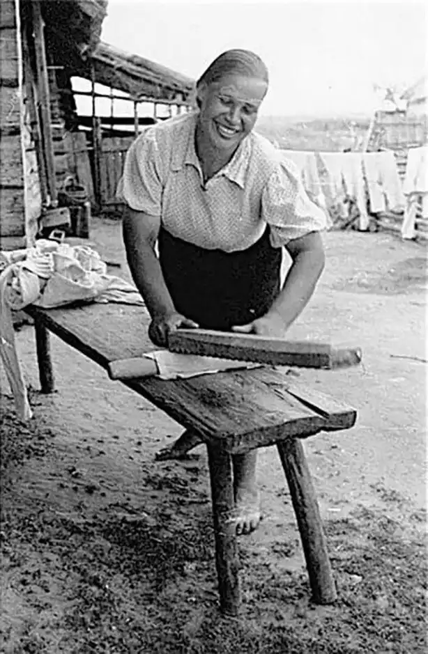 28. Глажка белья рубелём, СССР, 1940-е