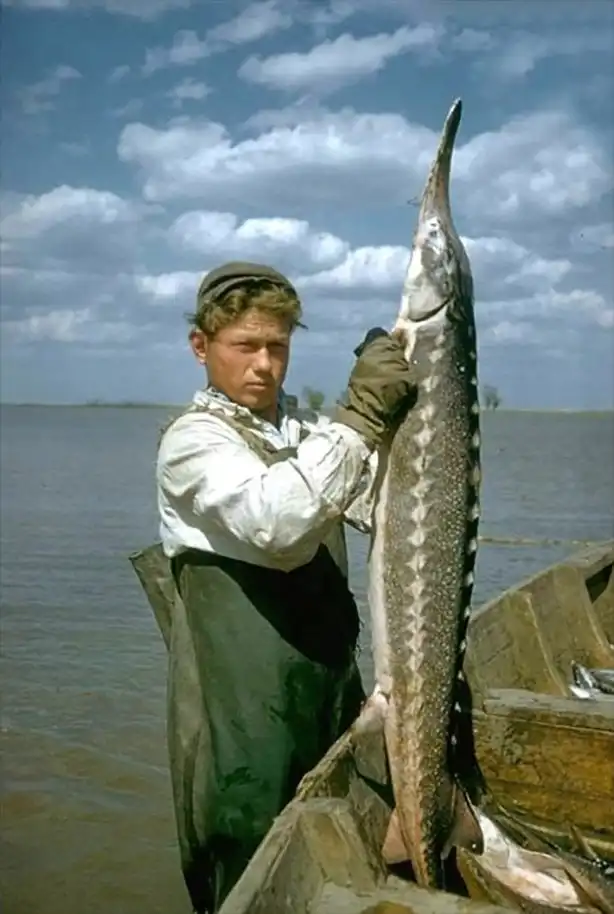 34. На осетровом промысле. Астрахань, 1960 год.
