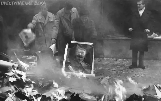 Венгерские повстанцы сжигают портрет Сталина, 1956 год.