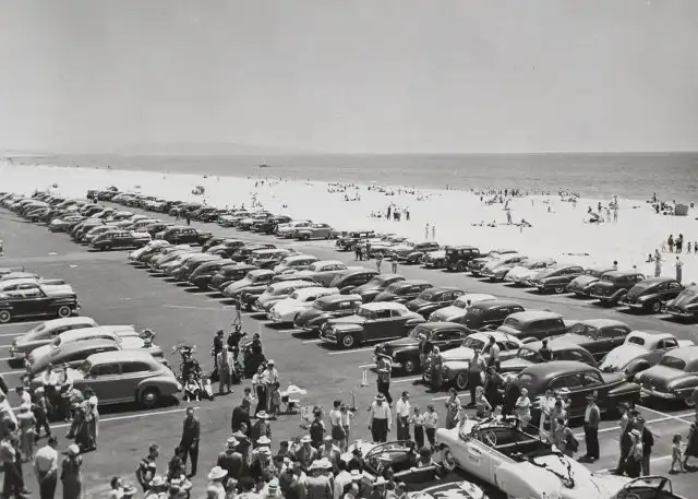 Парковка рядом с пляжем в Калифорнии. США, 1952 год