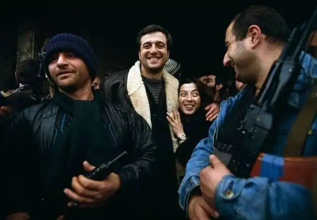 Лидер Национально-демократической партии Грузии Георгий Чантурия окружен сторонниками после своего освобождения из тюрьмы в Тбилиси, Грузия, 28 декабря 1991 г.