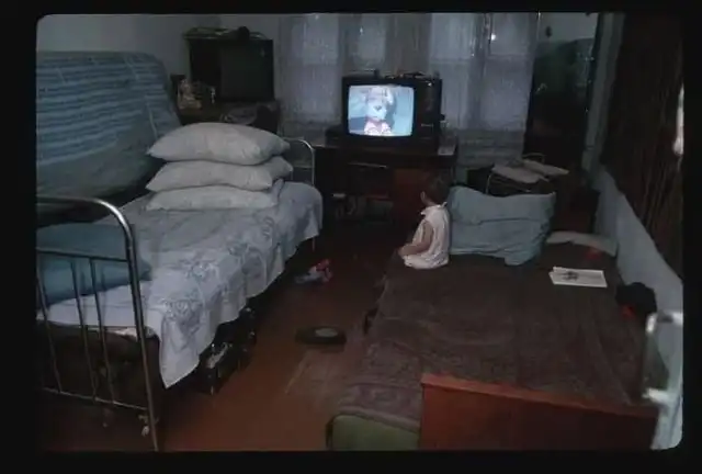 Девочка смотрит передачу «Спокойной ночи малыши». Россия, Новокузнецк, 1991 год.