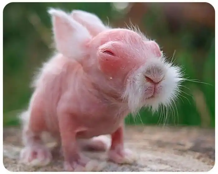 Этот кролик только родился, но уже похож на очень мудрого старца, который повидал все в этой жизни. Хотелось бы обратиться за советом к такому малышу! Или, может быть, это кролик Бенджамина Баттона?