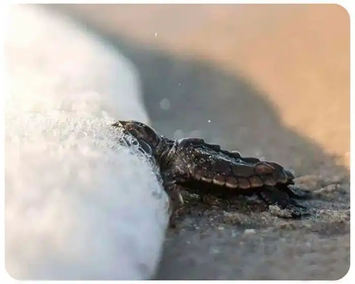 Совсем юная черепашка впервые встретилась с огромным океаном. Знакомство получилось приятным: теперь малышка будет появляться там все чаще и чаще. Согласитесь, что многие из нас также хотели бы окунуться в соленую воду, отдыхая от работы на побережье.