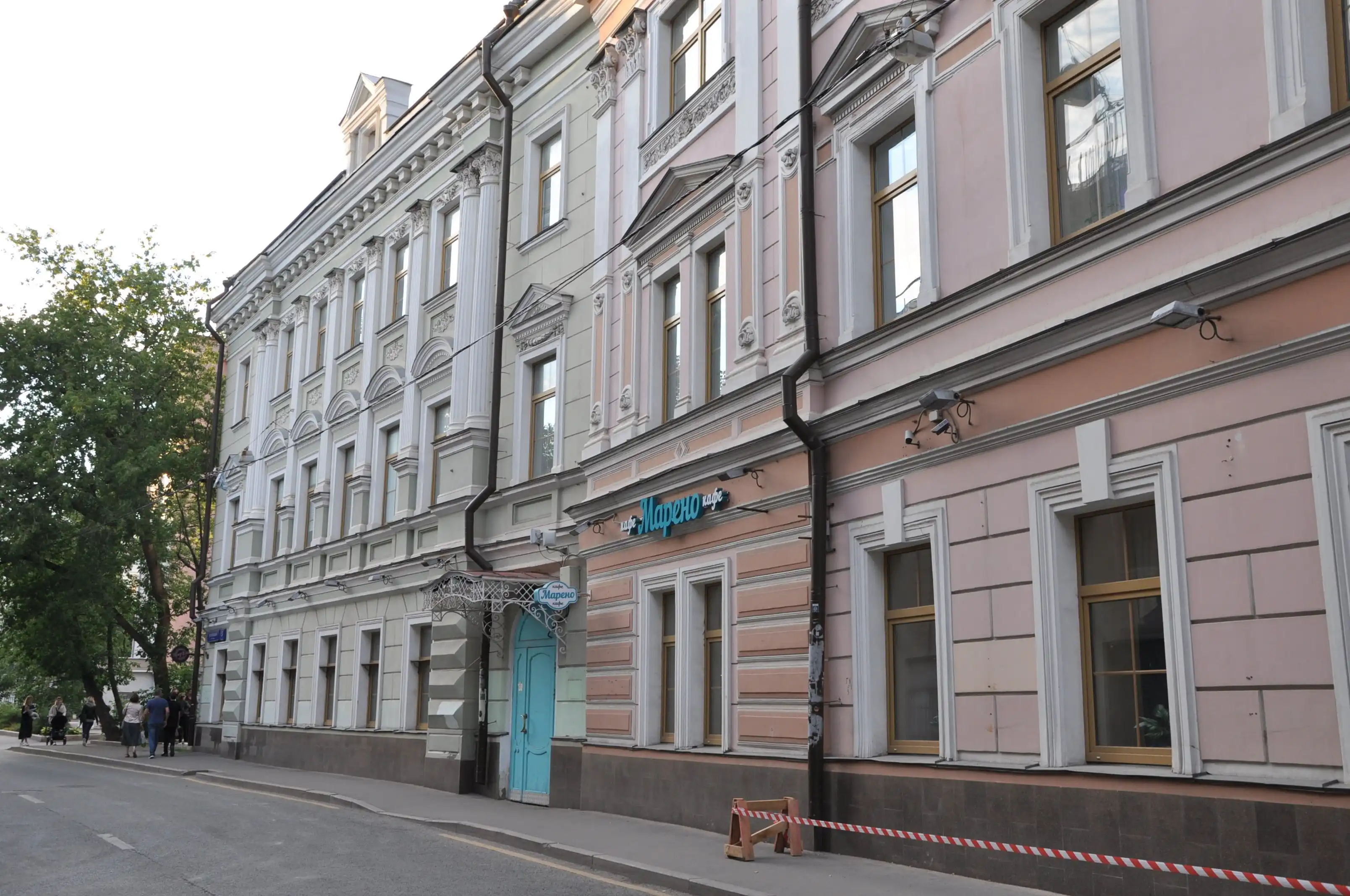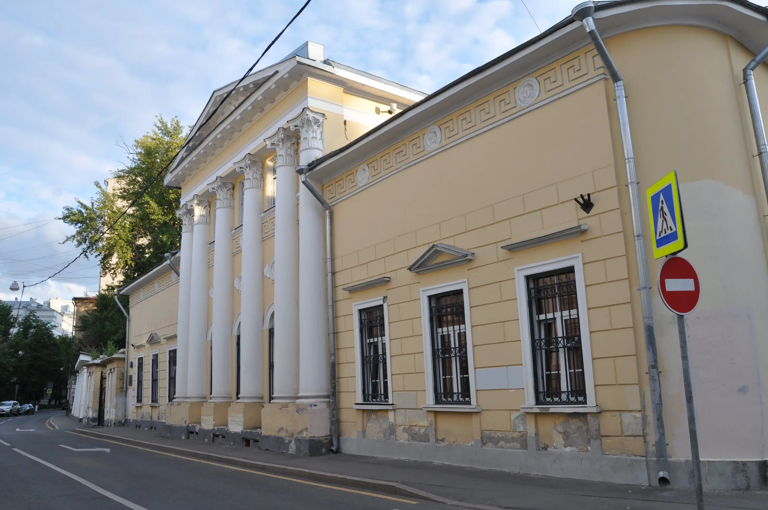 Одно из немногих сохранившихся деревянных зданий Москвы. Больничный корпус мясницкого отделения чернорабочей больницы. Архитектор: Александр Адольфович Мейнгард. 1875 год.