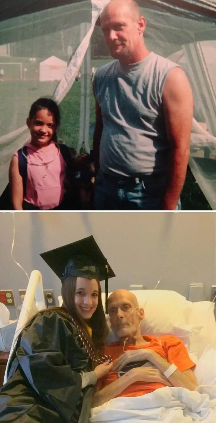 "Наша мама умерла, когда мне было 16 лет. Наш отчим мог бросить меня и сестру, но он работал на трех работах, чтобы мы ни в чем не нуждались. Он умер пару лет назад, но я никогда его не забуду!"