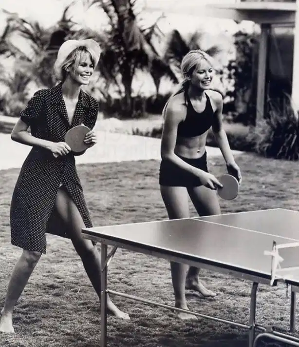 12. Клаудия Шиффер и Валерия Мазза играют в настольный теннис, 1995 год.