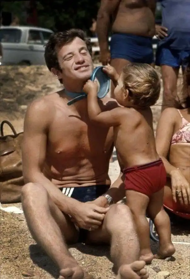 38. Жан-Поль Бельмондо с сыном Полем на отдыхе в Сен-Тропе, 1964 г.