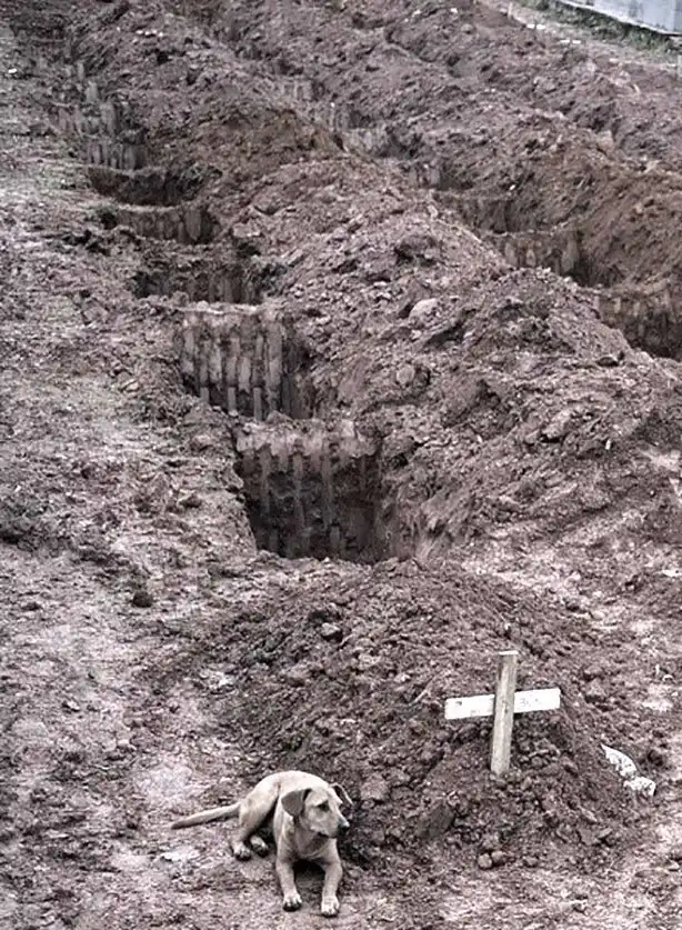 25. Собака по кличке Леан второй день подряд караулит могилу своего хозяина, погибшего под оползнем возле Рио-де-Жанейро, Бразилия, в 2011 г.