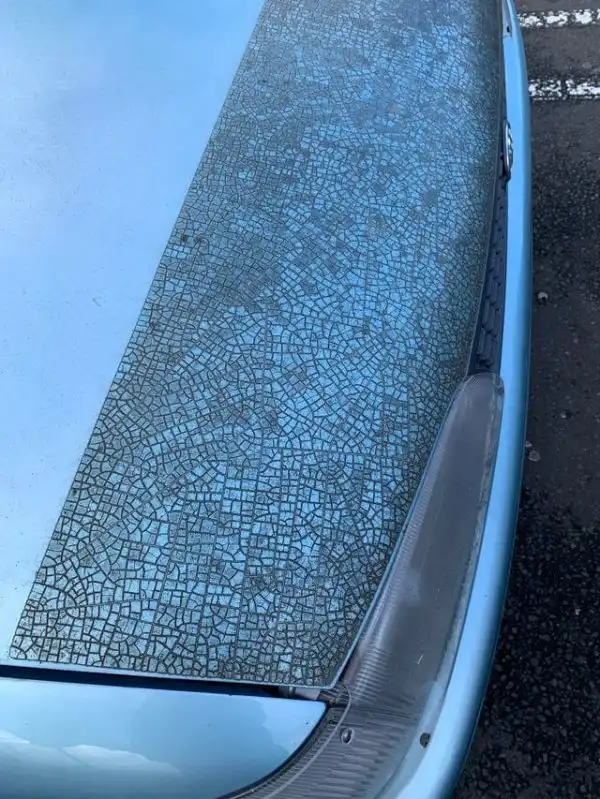 Защита на капоте потрескалась и теперь выглядит как старая карта города