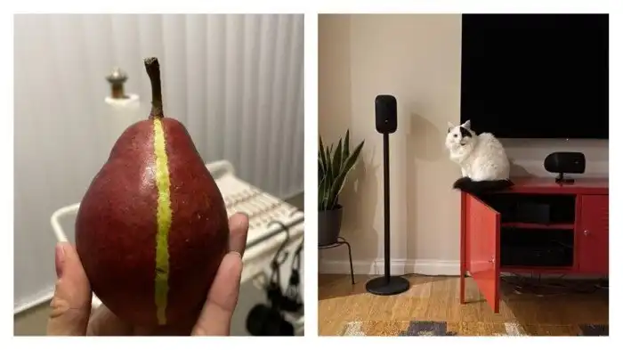 Красная груша и ее идеальная желтая полоса