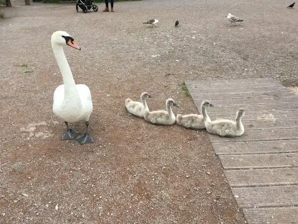 Лебедята сели в такую ровную цепочку, что хоть на парад!