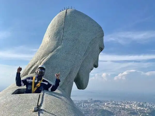 Голова статуи Христа-Искупителя в Рио проходит процедуру мойки в честь грядущего 90-летия памятника