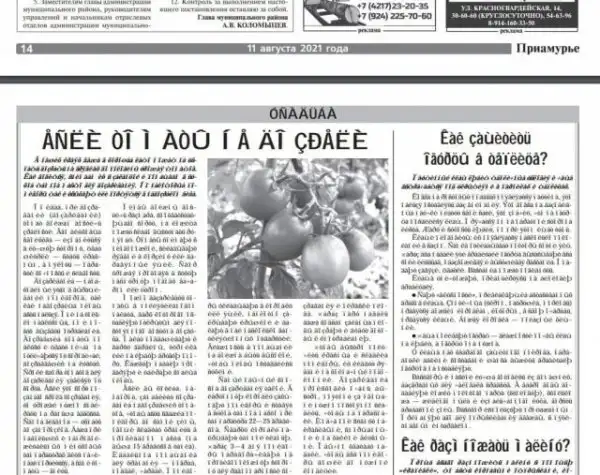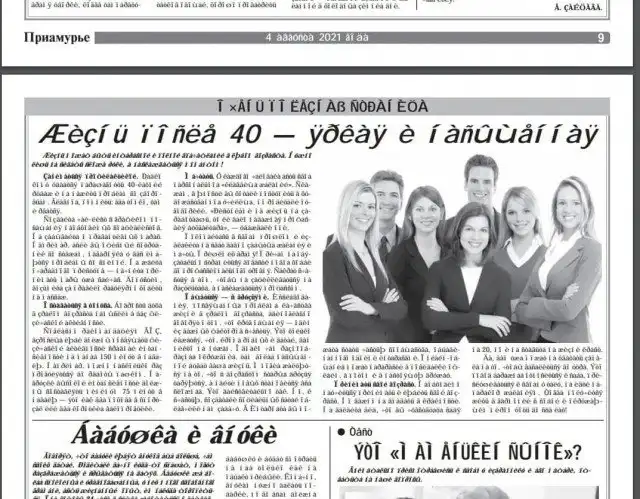Как сообщает красноярский телеграм-канал «Борус», редакция «Приамурья» регулярно выпускает газеты с тарабарщиной. Материалы кем-то написаны, сверстаны. Вот только изданы на тарабарщине, видимо, из-за сбитой кодировки. Полюбуйтесь!