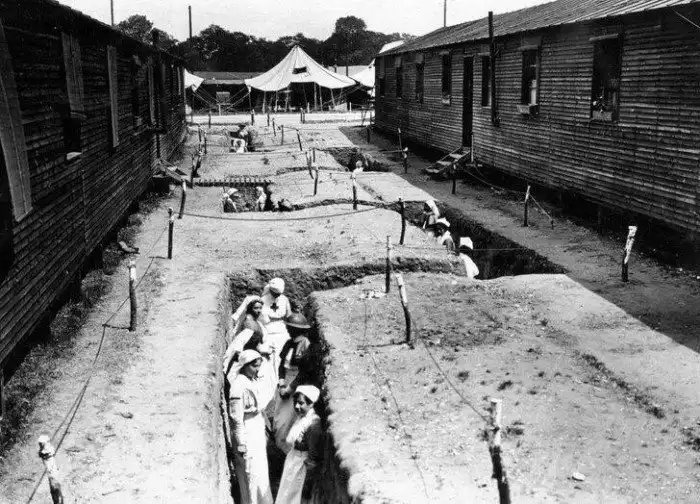 24. Медсестры в траншеях между больничными палатами. Первая мировая война. Франция. 1918 год