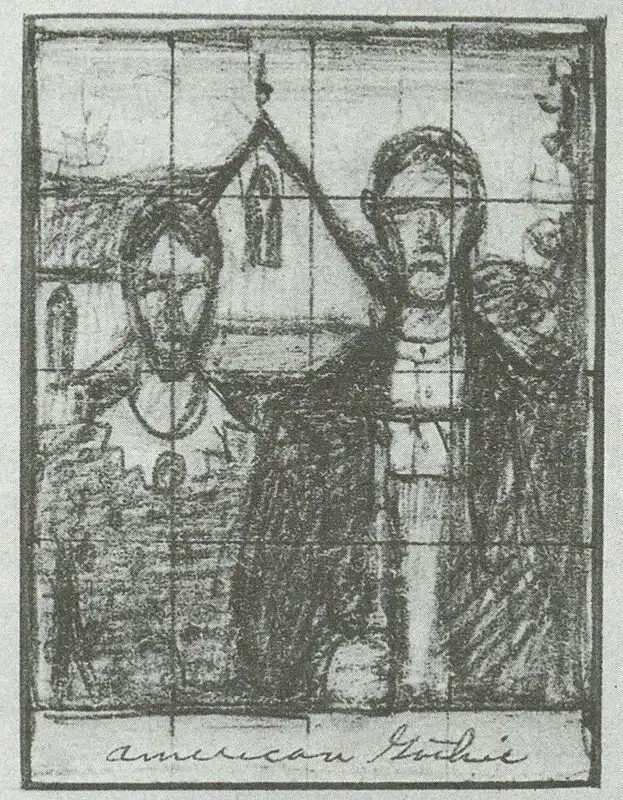 16. Карандашный набросок "Американской готики" Гранта Вуда