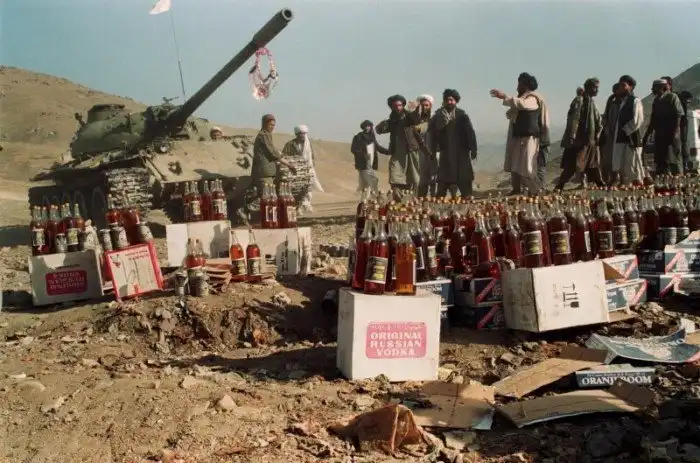 17. Талибы готовятся уничтожать изъятое при взятии Кабула богомерзкое пойло, 1996 год, Афганистан