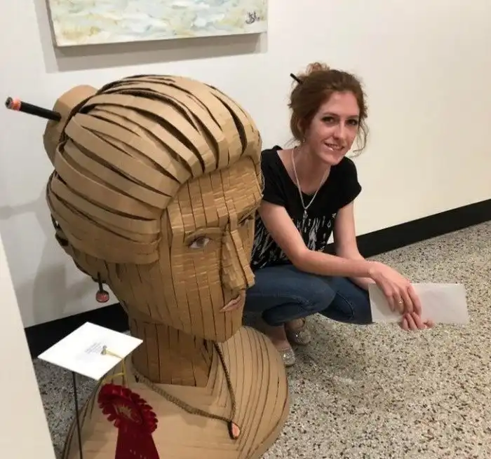А ведь похожа! Девушка и ее гигантский бюст из картона