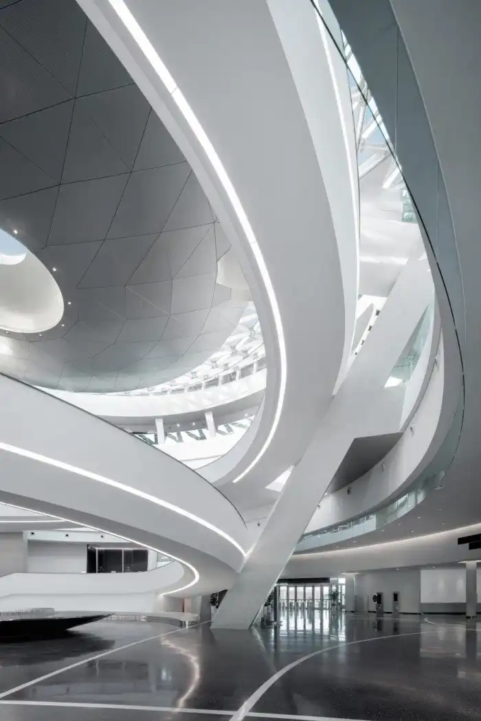 Этот проект Шанхайского астрономического музея выиграл конкурс дизайна благодаря его динамической форме, которая символизирует движение небесных тел и состоит из окулуса, перевернутого купола и сферы.