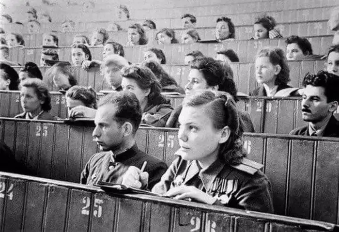 3. Не все фото с 1 сентября веселы: это снимок сделан 1 сентября 1945 года, возвращение к мирной жизни, первая лекция в МГУ
