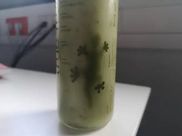 Дизайн банки с соком выглядит так, словно в ней прячется ящерка