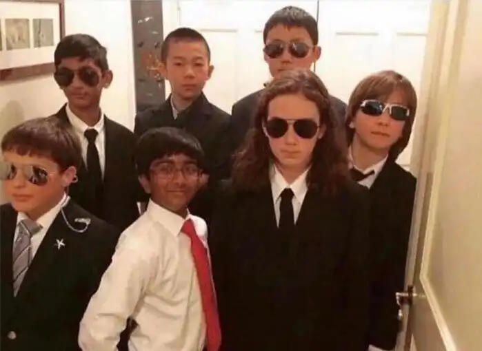 "Друг моего сына Джастина не может носить костюм по религиозным соображениям. Поэтому его компания друзей притворилась его "телохранителями" на школьный праздник. Горжусь!"