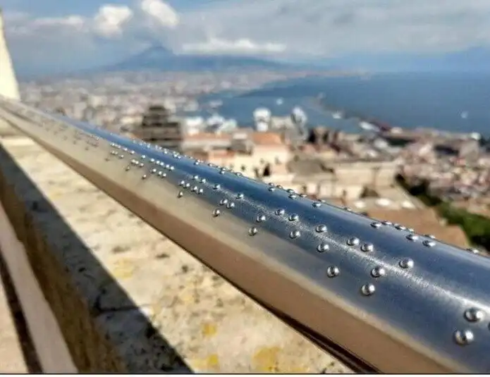 Шрифт Брайля на перилах смотровой площадки в Неаполе, где описан вид, открывающийся с нее
