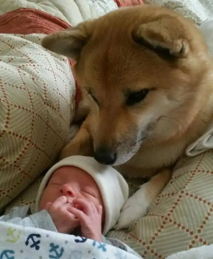 "Наша собака уже любит своего маленького хозяина. Она не отходит от него и постоянно сторожит"