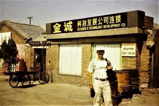 Российский специалист у колыбели китайской науки, 1993 год, Пекин. За спиной российского специалиста находятся образцы продукции "Корпорации по развитию науки и технологии".