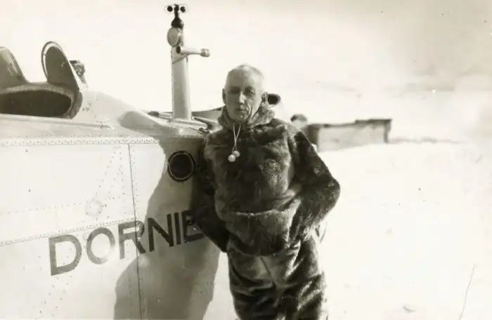 15. Руаль Амундсен в Ню–Олесунне у своего самолёта «Дорнье», Норвегия, 1925 год