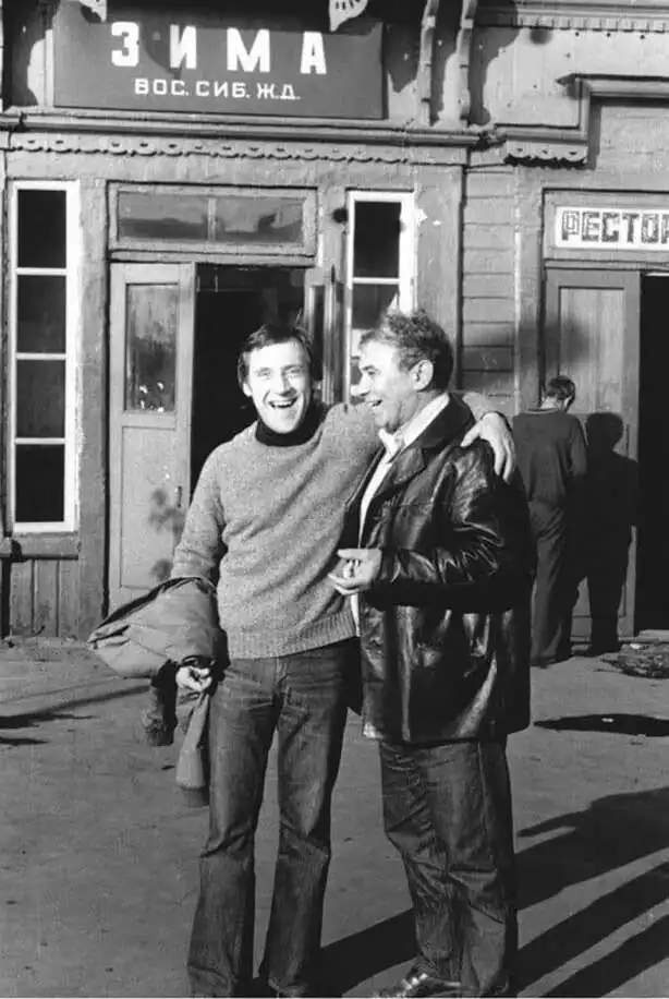 Рядом с Владимиром Высоцким старатель, первый советский миллионер, колымский узник и друг Высоцкого, Вадим Туманов. Прииски Бодайбо, июнь 1976-го. Высоцкий у старателей тумановской артели «Лена»