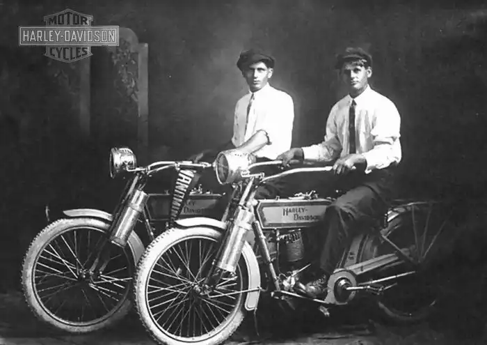 28. Уильям Харли и Артур Дэвидсон- основатели Harley Davidson, на своих мотоциклах 1941 год
