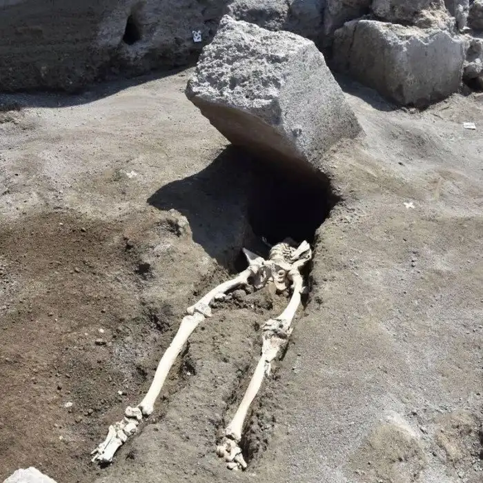 2. Скелет человека, раздавленного летящей каменной плитой во время извержения Везувия почти 2000 лет назад. Обнаружен в мае 2018 года