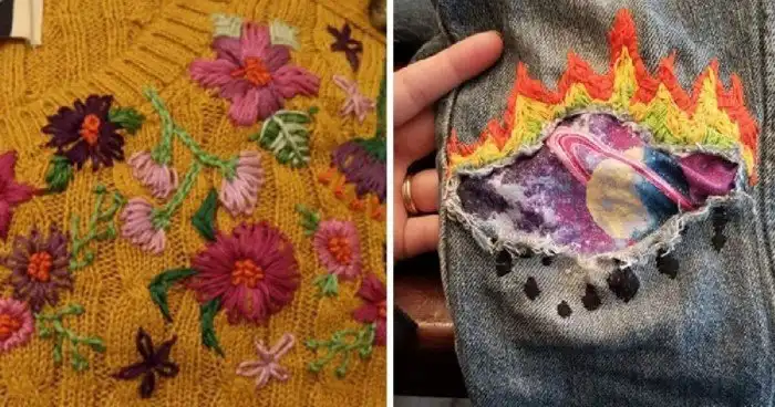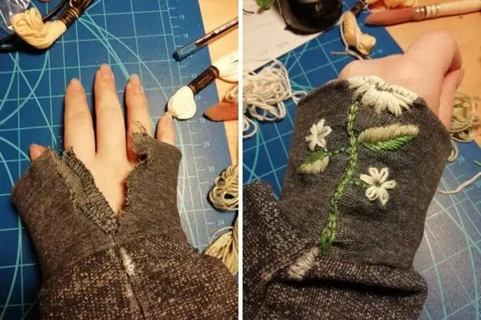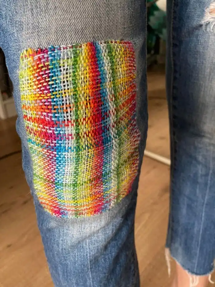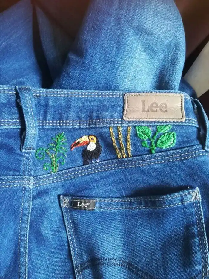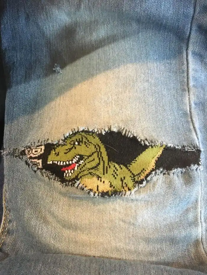 6. "Мои джинсы всегда рвутся на левом колене. Это мои любимые, поэтому я решила, что они заслуживают хорошего ремонта"