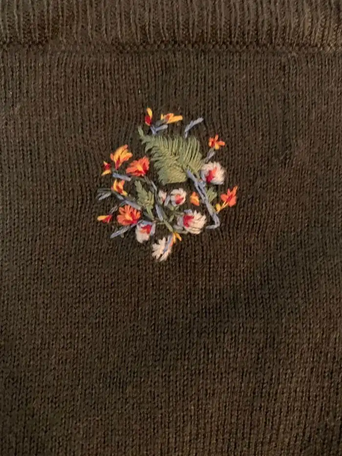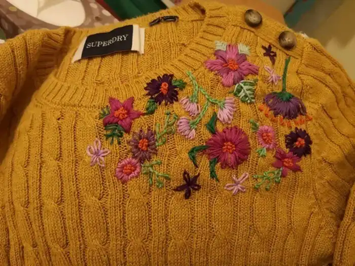 7. "На мой желтый джемпер пролился розовый лак для ногтей, поэтому я покрыла его вышивкой"