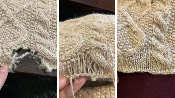 1. "Не знала, что из этого получится, но в итоге я починила порванный свитер. Я молодец"