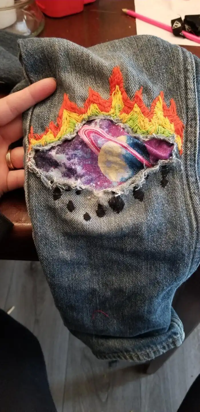 5. "Мой ребенок попросил заделать дыру на колене с помощью "Пламени в космосе"
