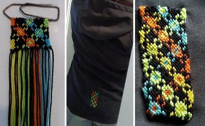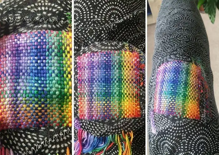 14. "Мой первый опыт применения техники ручного ткачества для заделывания дырки. Вышло неплохо, но нужно еще практиковаться"