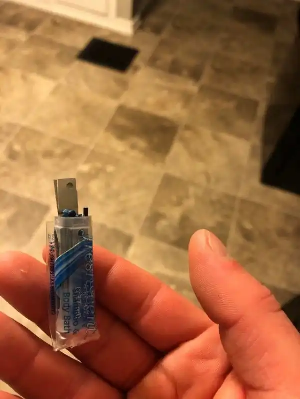 Маленькое режущее устройство, сделанное из бритвы и упаковки от шампуня