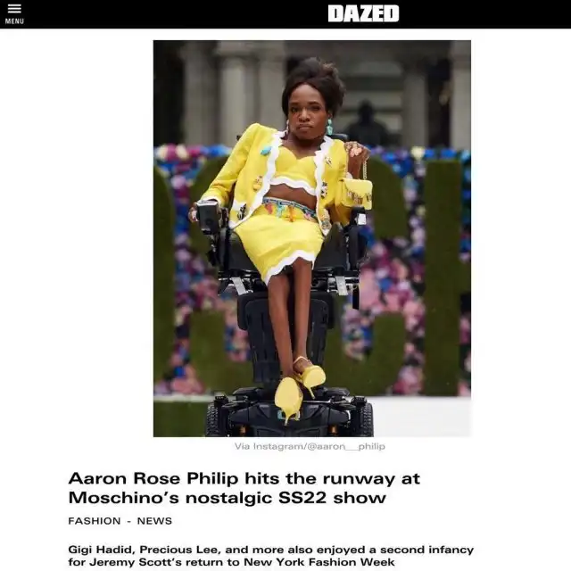 Аарон Филипп раньше был мужчиной, но затем решил круто изменить свою жизнь (во всех смыслах) и не только сменил пол, но и подался в модели. Недавно она подписала контракт с известным агентством и теперь выходит на подиум наравне с Ириной Шейк и другими супермоделями. Как видно из фото, дается ей это пока с трудном, но начало положено. С одной стороны хорошо, что у мире стали замечать людей с ограниченными возможностями, нот вот вся ее история "до" модельного бизнеса кажется немного странной.