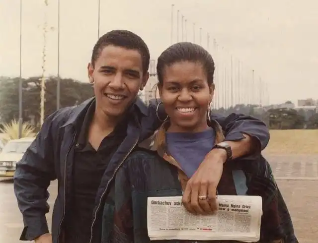 Барак и Мишель Обама после свадьбы, 1992 год.