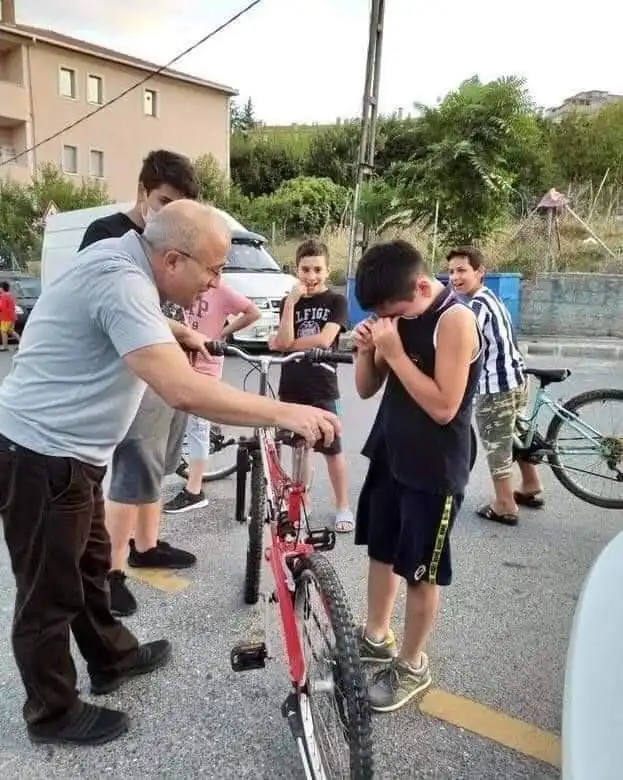 У этого мальчика сломались тормоза на велосипеде, и он врезался в машину. Через несколько дней водитель подарил мальчику новый велосипед.