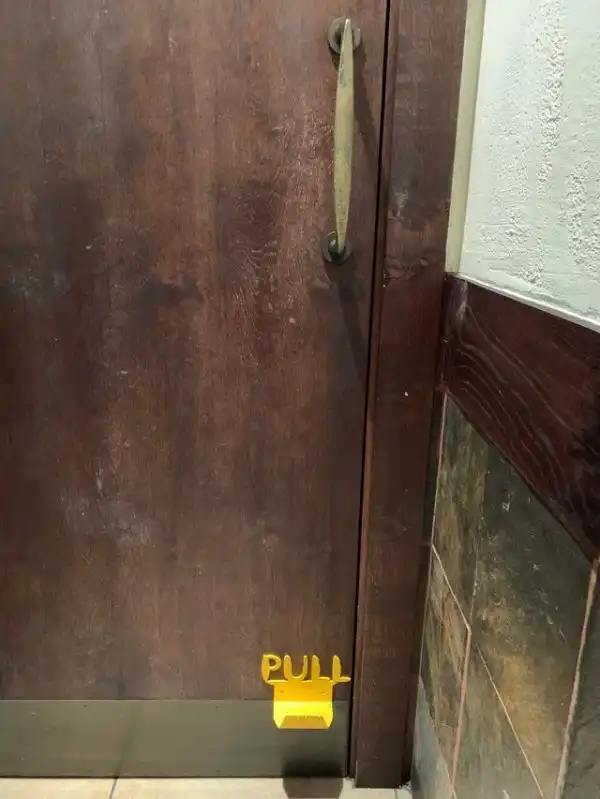 В нашем местном ресторане на двери в туалете есть приспособление, чтобы открыть её, не пачкая руки