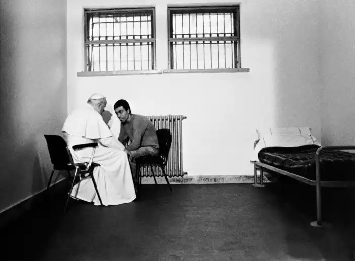 Иоанн Павел II встречается с Мехметом Али Агджой, человеком, который пытался убить его, в римской тюремной камере, 1983 года.